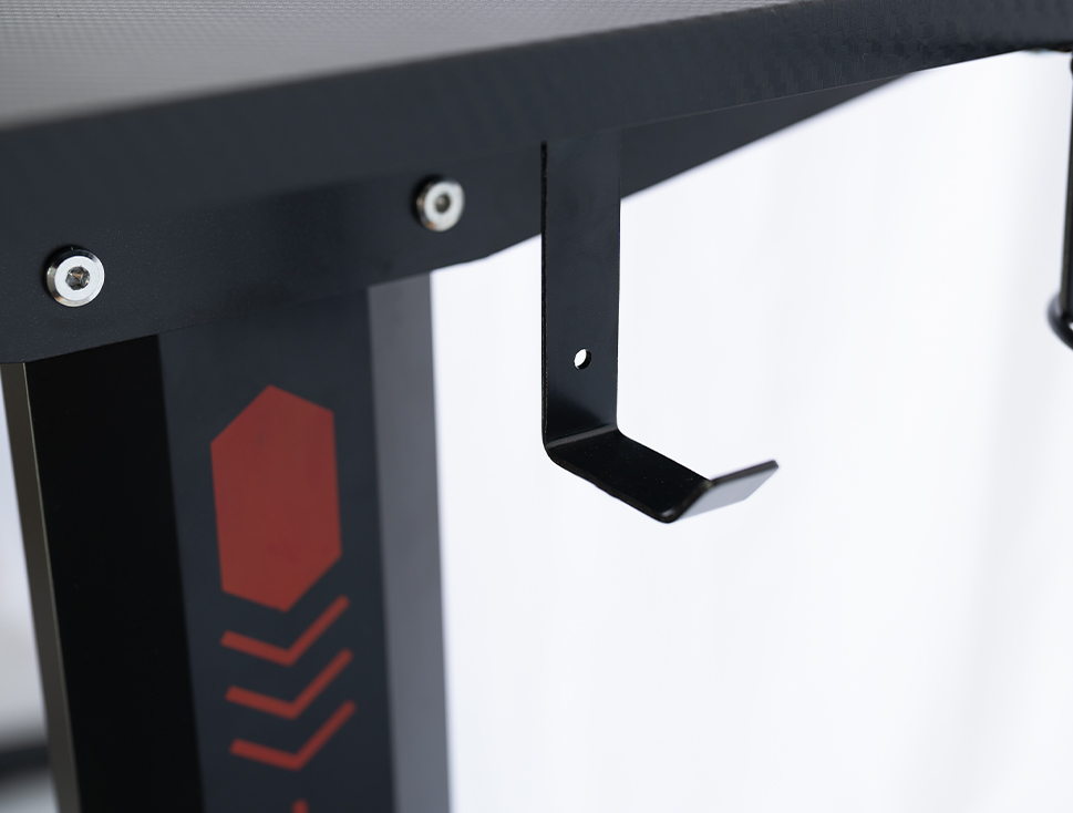 Díky výškově nastavitelným nožičkám se nemusíte obávat ani kymácení na nerovném povrchu. Guma na spodní straně nožiček navíc chrání podlahu před poškrábáním. Potěší vás také držák na nápoje a háček na sluchátka. Toto příslušenství je nejen praktické, ale také mimořádně účinné. Tak se pohodlně usaďte a vydejte se na cestu legendy esportu!
